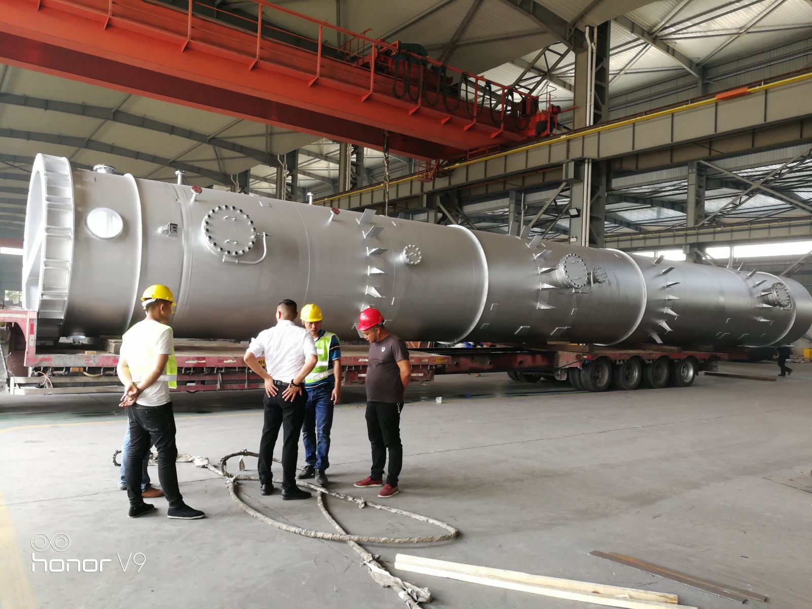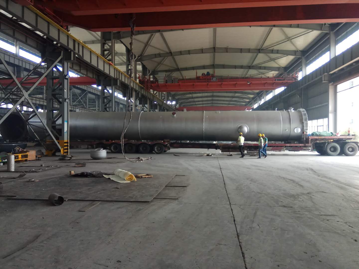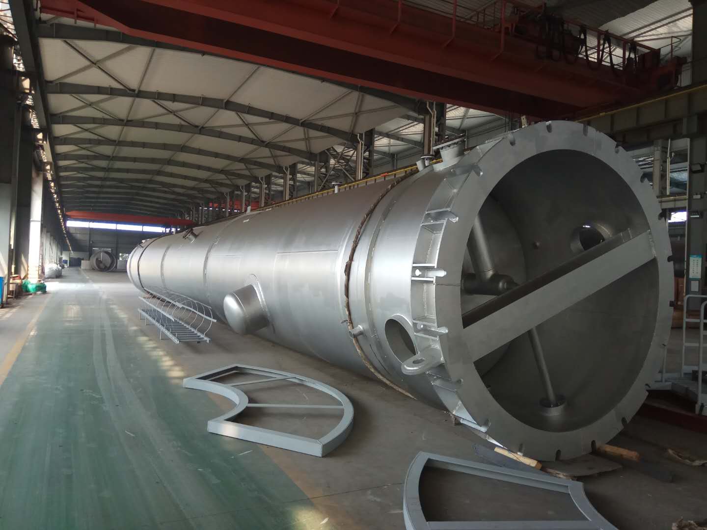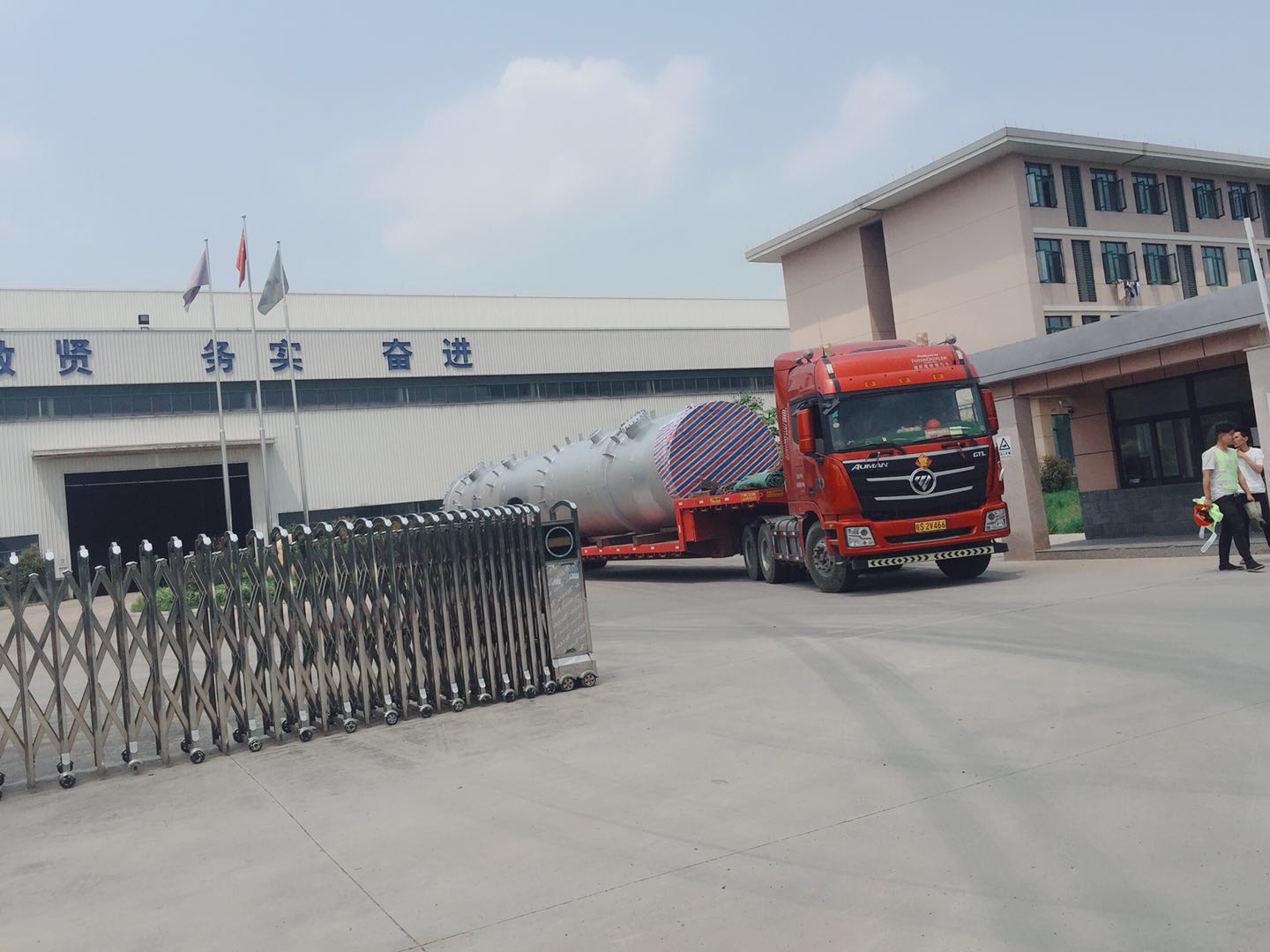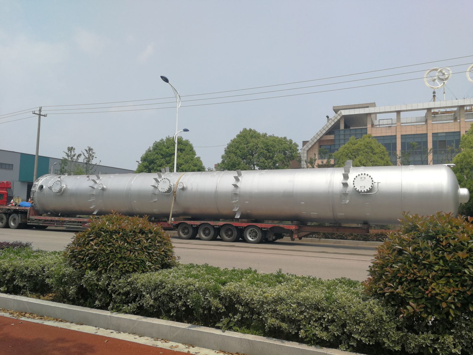 云南玉溪15000空分項目空氣冷卻塔和水冷卻塔制造順利按時完工,按時交貨??諝饫鋮s塔殼體重30.5t,直徑2.6m,高24.7m;水冷卻塔殼體重17.4t,直徑2.6m,高17.3m。